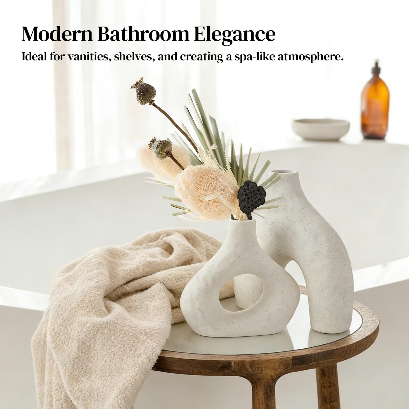 Ceramic Vase Set of 2, 7.6″ Decorative Pampas Vase for Home Decor, Modern Farmhouse Pottery Vase for Living Room Coffee Table Kitchen Bedroom Desk Entryway Mantel Book Shelf, Soft White