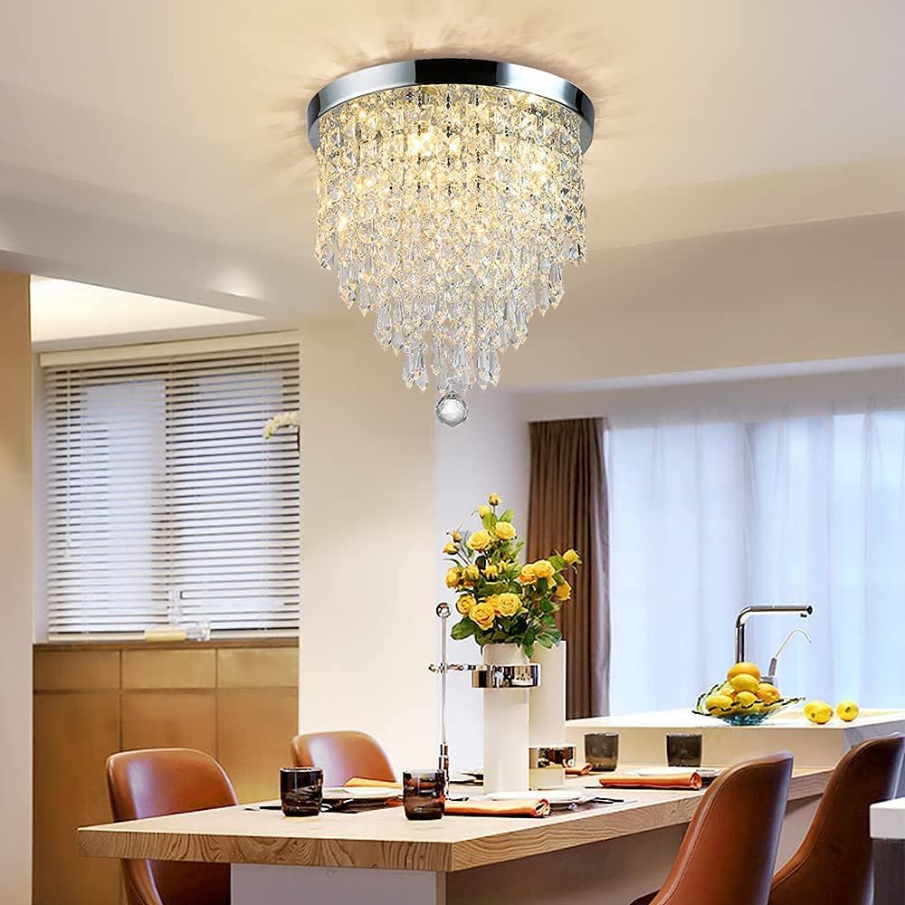 - 【High-Quality Material】This ceiling chandelier light is made up of 360pcs crystal beads, really beautiful in sparkling chrome plate which has the function of good heat-resistant, anti-corrosion and anti-moist, safe and durable.